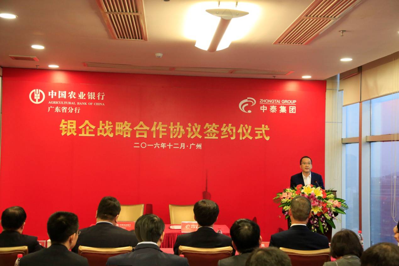 “Strategic Cooperation Agreement”was reached between Zhongtai Group and Agricultural Bank of China Guangdong branch.