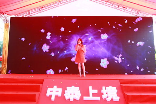 随后,琼瑶女神陈德容华丽现身登台,带来《一帘幽梦》、《金色的雨》两首美妙动听的歌曲,并与现场嘉宾亲切互动。陈德容女士向衡阳中泰上境送出特意为此次活动定制的签名手模,预祝衡阳中泰上境开盘大卖。最后琼瑶女神陈德容和中泰集团到场领导一同开启中泰上境营销中心开放盛典。