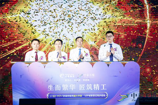 伴随着一场华美而盛大的舞蹈,中泰天境样板间开放盛典正式启动。中泰集团贵阳公司总经理舒朝民先生上台发表了致辞,对到访的媒体及来宾表示了感谢,并表达了中泰集团致力于小河城市焕新的美好愿景。随后中泰集团贵阳公司副总经理赵海峰先生上台致辞,介绍了中泰天境项目从规划设计之初则秉持着“以人为本、尊重自然、求精求美”的理念,精雕细琢,用心考究每个细节,建造布局科学、功能完善的舒居美宅,致力于焕新贵阳老城人居。最后中泰集团到场领导共同推杆,并表示中泰天境将一如既往,以匠心精工为贵阳人兑现美好生活愿景,至此样板间开放盛典完美礼成。